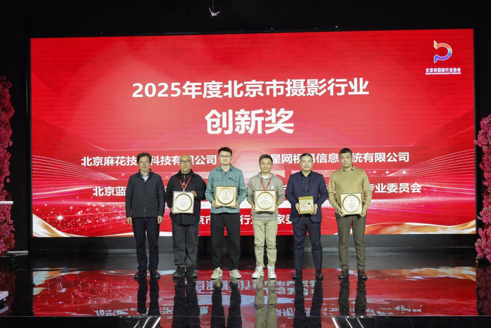 随后,庹司长上台为北京麻花技艺科技有限公司、北京蓝色考拉纪实影像、北京市摄影行业金融专委会、北京市摄影行业专家委员会、星网视易信息系统有限公司等五家因卓越的创新实践获得“2025年度北京市摄影行业创新奖”的单位颁发奖牌。