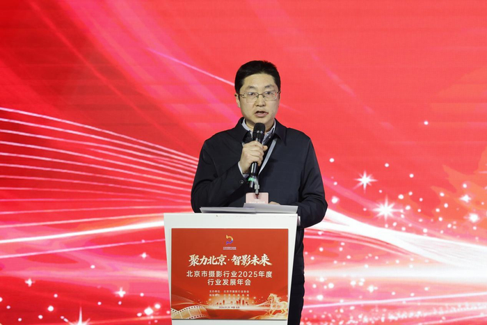 北京市商务局生活服务处宋志雷处长随后发表重要讲话。他首先代表北京市商务局对年会的召开表示热烈祝贺,并向广大摄影从业者致以诚挚问候和衷心感谢。宋处长高度肯定了摄影行业在记录城市风貌、促进文化消费、服务社会民生方面的重要作用,特别点赞了从“新中式”旅拍到AI技术应用等行业活力迸发的现象,指出其为北京国际消费中心城市建设增添了独特光彩。面对消费升级与技术迭代的时代机遇,宋处长强调,行业应凝聚共识,聚焦标准引领、数字赋能、人才根基三大关键,共同推动摄影行业迈向更高质量的发展新阶段。他表示,商务局将持续强化政策引导、优化营商环境、搭建平台桥梁,全力支持行业协会发挥职能,与业界携手谱写首都摄影行业繁荣发展的新篇章。
