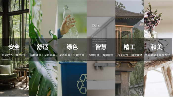 “好房子”作为底层根基,以「绿水青山」产品系为依托,融入“安全、舒适、绿色、智慧、精工、和美”六大维度的品质容器。从根本上解决购房者对居住安全与舒适的基础需求。
