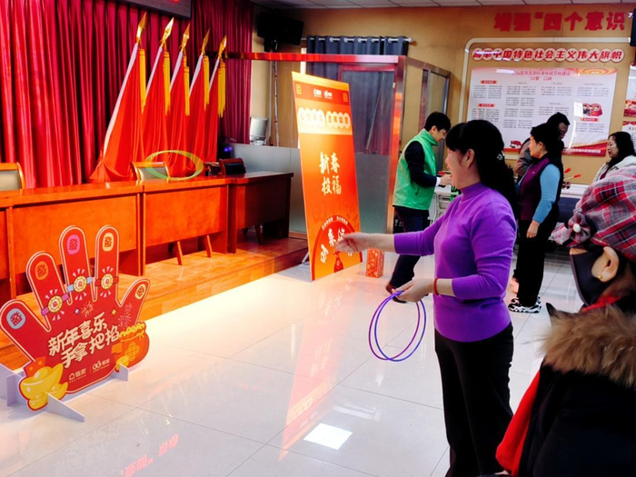 居民参与游戏互动活动现场,传统年俗与现代游戏巧妙融合,让活动现场氛围持续升温。在通州区永丰里社区的投壶游戏区,居民刘女士屏息凝神,箭矢划出优美弧线落入壶中,现场响起阵阵喝彩;套圈游戏区也很热闹,李叔叔看准目标,轻轻一抛,套圈就套中了。他开心得像个孩子,笑着说:“这比玩手机有意思多了,还能和邻居们一起玩,多好啊!”