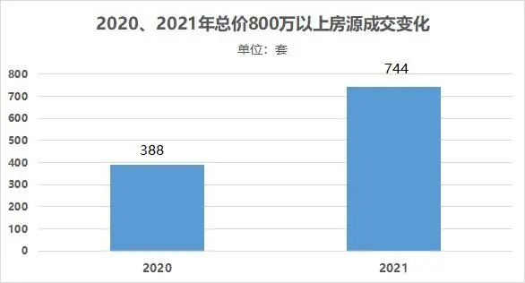 值得注意的是,800万以上房源的成交量远大于2020年,涨幅为91.8%,购房者对高品质改善房的需求有所增长这一现象不容忽视。