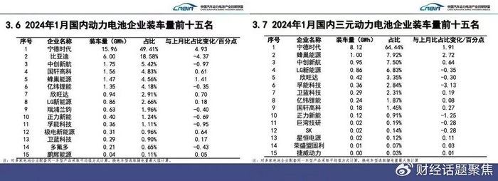去年,凭借飞叠短刀优势,蜂巢能源在PHEV和增程市场表现亮眼,多款插混电芯备受整车企业青睐。2024年1月,蜂巢能源已成功下线40万套PHEV电池包。目前,蜂巢能源的插混电芯产品已经搭载了吉利、岚图、理想、坦克等20余款PHEV和增程车型上市。今年1月动力电池装机量达1.47GWh,排名全国第五,其中三元电池装机量为1GWh,位列全国第二。2023年12月,在蜂巢能源第四届电池日上,蜂巢能源进一步推出了面向PHEV和增程市场的三款大里程快充插混电芯,满足市场对大电量、长续航和快充性能的插混电池的需求。随着新产品在2024年的陆续量产,蜂巢能源将持续发力PHEV市场,市占率将进一步提升。
