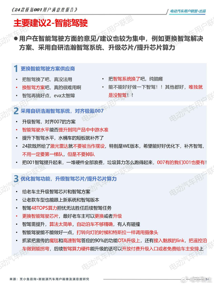 2.用户购买24款极氪001的TOP5核心因素是安全性、操控、动力、外观、空间,智能驾驶和智能座舱在选择因中排名非常靠后。