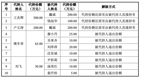 2023 年 12 月 5 日,傅冬青分别与廖小丹、吴来舟、刘萍萍、沈佳斌签署了《解除代持协议》,确认由代持人退还出资,即被代持人的出资份额原价转让给代持人,委托持股关系自《解除代持协议》签字之日予以解除。