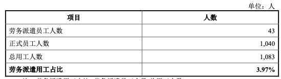 截至 2023 年 10 月 31 日,公司已与 405 名转为正式员工的原劳务派遣员工 (以下简称“转正式员工”)签订了公司统一的《劳动合同》,转正式员工与正式员工享有同等权利、履行同等义务。截至 2023 年 12 月 31 日,公司总用工人 数为 1083 人,其中,正式员工 1040 人,劳务派遣员工 43 人,劳务派遣用工占比情况具体如下: