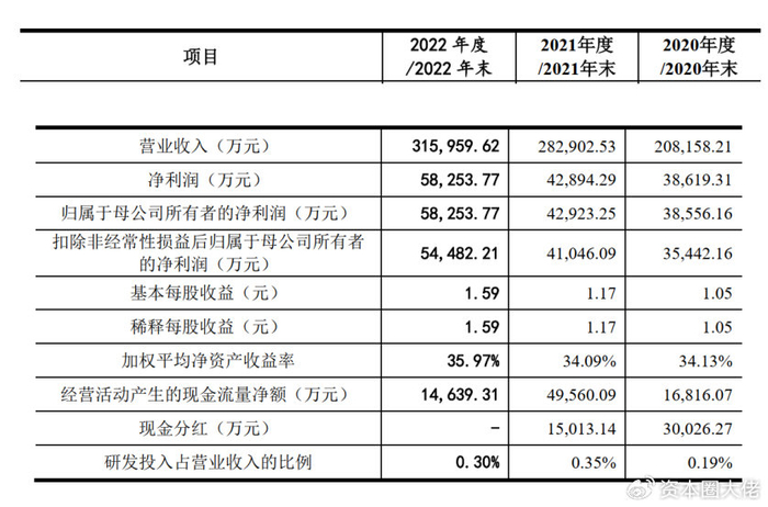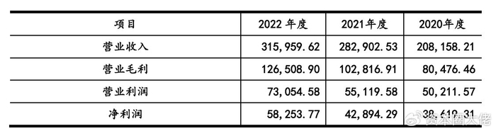 2020年度、2021年度和2022年度,周六福营业收入分别为208,158.21万元、282,902.53万元和315,959.62万元;营业毛利分别为80,476.46万元、102,816.91万元和126,508.90万元;净利润分别为38,619.31万元、42,894.29万元和58,253.77万元。