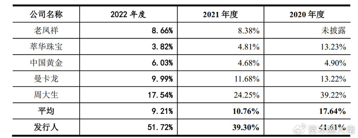 但不得不注意的是,周六福加盟模式下的毛利率显著高于同行业。即便是加盟收入占比高达70%以上的老凤祥、萃华珠宝和周大生,加盟模式毛利率近年来整体呈现下降趋势,且远低于周六福。而周六福的毛利率呈上升趋势,且显著高于行业平均值。