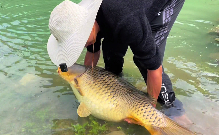 因为太久都没见过如此巨大的野生鲤鱼被钓到过了。据这位钓到这条巨型鲤鱼的钓友说,他一开始看浮漂的漂像还以为是白条。