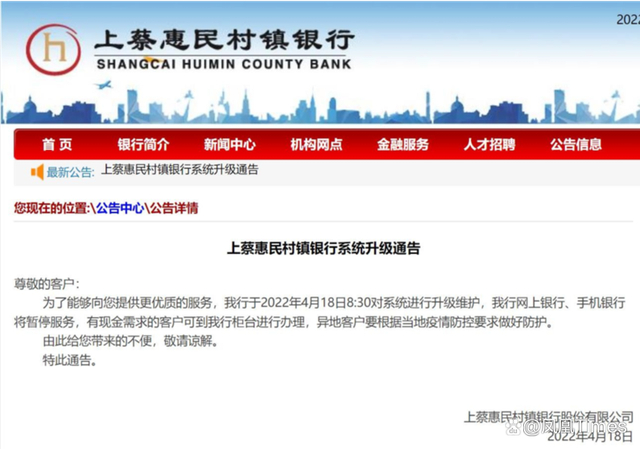 4月18日起,6家河南、安徽村镇银行关闭线上取现通道,后来线下也无法取现。