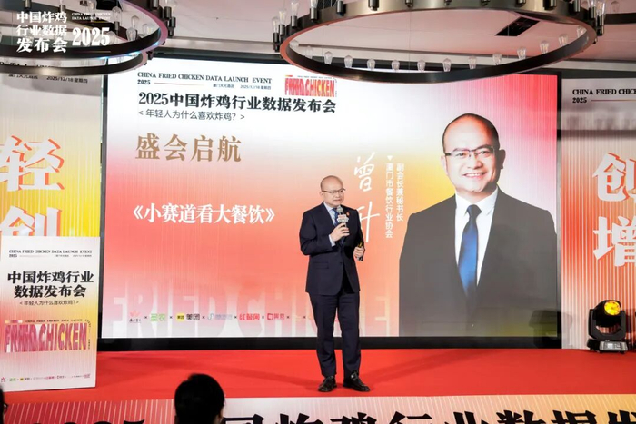 这场以 “数据解码・产业联动・投资破局” 为核心的行业盛会,吸引 200 + 位品牌方、加盟商、投资人齐聚鹭岛。盛会伊始,厦门餐饮行业协会秘书长曾升以《小赛道看大餐饮》为题开启分享,从行业发展宏观视角切入,深刻剖析炸鸡品类在餐饮市场中的增长潜力与发展前景,为在场嘉宾锚定赛道价值,引发广泛共鸣。