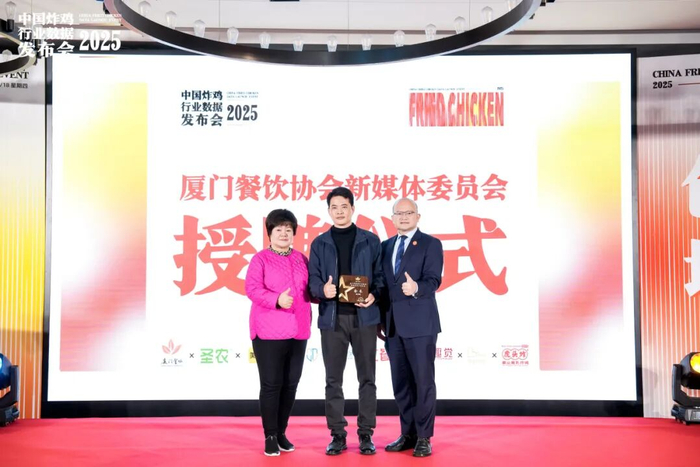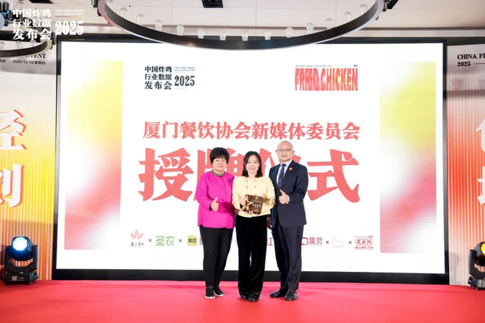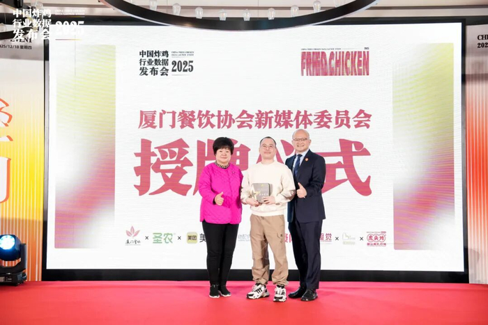 2025 年 12 月 18 日,厦门天元酒店 3F 宴会厅 - 中航厅暖意融融,由圣农集团与厦门市餐饮行业协会联合主办的2025 中国炸鸡行业数据发布会圆满举办,厦门市餐饮行业协会新媒体专业委员会授牌仪式同步启幕。两大重磅环节接连登场,既为餐饮人解锁炸鸡品类投资密码,更擘画了厦门餐饮数字化升级的全新蓝图。红餐产业研究院现场首发《炸鸡品类发展报告2025>>厦门市餐饮行业协会联合圣农集团,美团,绝配全景导航炸鸡产业链,以虎头炸为赛道标杆,联合趣觉餐饮策划深度解析炸鸡行业趋势。