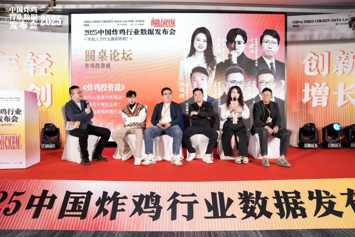 由瓴刻科技联合创始人王紫剑主持的《炸鸡投资者说》圆桌论坛,汇聚 6 位跨界加盟商,畅谈炸鸡赛道投资的避坑指南与盈利秘诀,现场思想交锋热烈,掌声此起彼伏。