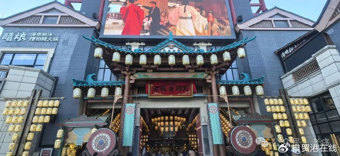 海口东坡老码头项目位于海口海甸岛上,该项目借用了“苏东坡”IP和苏东坡文化,通过带有宋式风格的建筑、诗词景观、全时段演艺、小吃美食、现代娱乐消费等等,构建了号称“一秒入宋”的穿越场景以及符合当代市民消费习惯的场景。