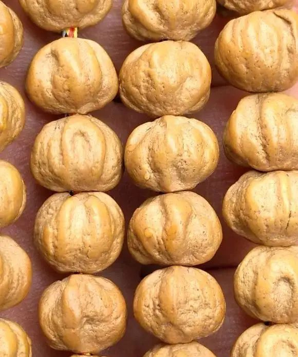 第2个说营养过剩的甘孜籽,它的海拔在3千米左右,比热振的低了1000多米,它的珠型一般都比较圆润,有点矮胖矮胖的像一颗一颗小包子,纹路却比较浅,一般的也是红皮为主,不过它的尺寸比热振的大了好几号,常规尺寸就是7,8,9,不过横截面就相对比较粗糙了,说白了就是有点虚胖。
