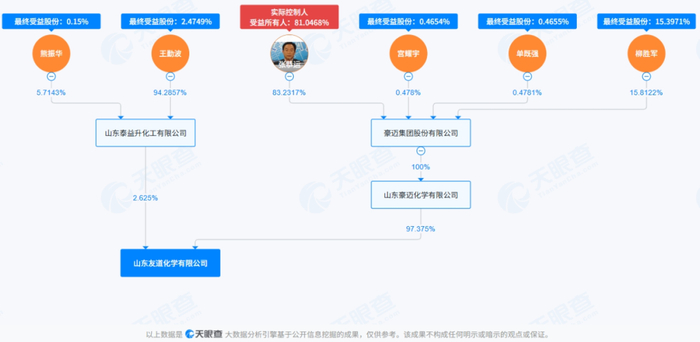 据天眼查,友道化学控股股东为山东豪迈化学有限公司,后者由豪迈集团股份有限公司100%持股。