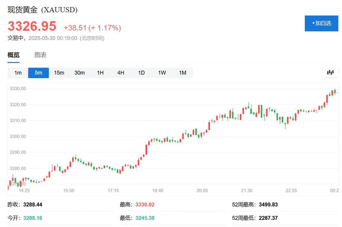 现货黄金盘中涨幅扩大到1%以上。
