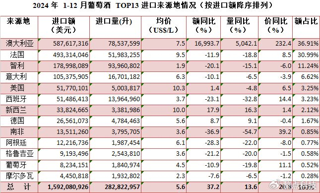 对等关税政策的调整直接冲击了本就脆弱的市场份额——中国海关数据显示,2024年美国葡萄酒进口额仅5177万美元,同比微增1.4%,但进口量下降4.8%,均价涨幅6.5%难以抵消关税成本压力。