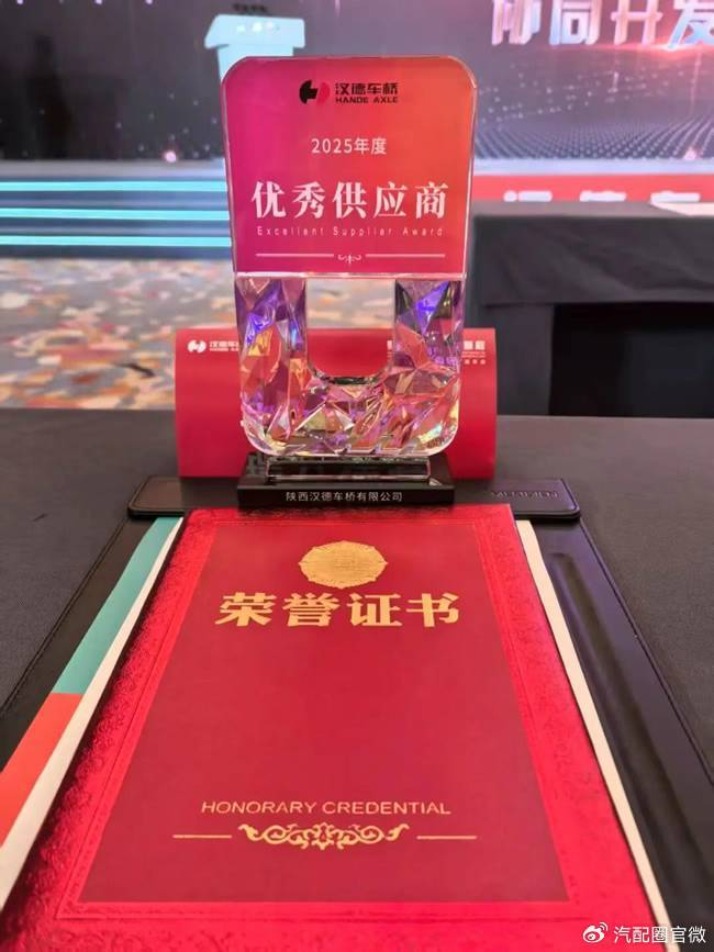 12 月 15 日,陕西汉德车桥有限公司于苏州举办 2026 年供应商年会。凭借过硬的产品质量与稳定供货能力,瑞立集团获评汉德车桥 2025 年度 “优秀供应商”,集团资深副总经理蒋伟荣参会领奖,王占朝亲自颁奖,彰显汉德车桥对瑞立集团的高度认可。该荣誉得益于汉德车桥的信任支持,更源于瑞立集团在技术研发、品控及交付上的持续深耕。瑞立集团将坚守 “市场导向、客户中心” 理念,以优质产品服务回馈合作,与汉德车桥携手 “聚势强链”,共推产业高质量发展。