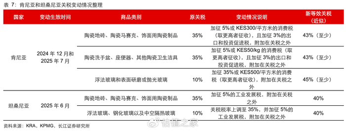 2025年中,肯尼亚继续增加关税,同时坦桑尼亚也对陶瓷和玻璃大幅增加关税。
