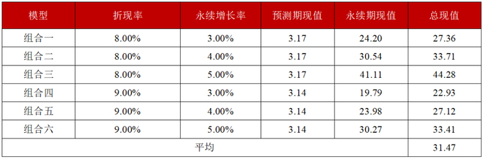 我们以预测的2022年至2024年EPS分别为0.92、1.16、1.37为基础,根据以下假设,进行绝对估值测算,对应每股合理的内在价值为31.47元/股。