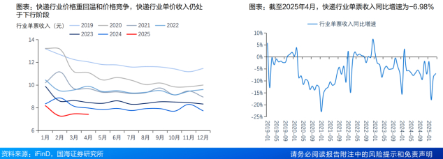 事实上,随着业务量的持续攀升,以及各家快递公司因规模大幅扩张后的摊薄效应,快递行业的成本呈持续下行。但是,比成本下降更快的是收入,根据国海证券统计,从2019年至今,快递行业单票收入几乎年年下降。