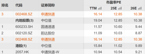 由于看不到尽头的资本开支和没完没了的价格战,就算快递公司再努力的以价换量、降本增效、抢夺市场份额,还是难以让资本市场判断拐点和终局,那么只能用脚投票作为选择。截至到2025年5月31日,“三通一达”的估值普遍被杀到了10倍出头的PE(TTM)。
