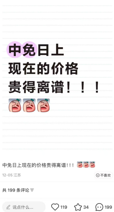 图片说明:日上上海线上渠道被下架后,小红书上随处可见抱怨中免日上价格变贵的吐槽,数据来源于小红书