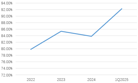 从经营表现来看,作为公司重要业务增长点,2022年至2024年,公司电池液冷板产品销售收入分别为8.04亿元、9.50亿元、11.79亿元,在主营收入中占比从79.8%提升至83.8%(今年一季度数据显示更是提升至92.27%)。值得一提的是,按照公司销售的电池液冷板可装配的新能源动力汽车数量测算,2024年公司的市场份额占比约为12.16%,在细分产品领域居于领先,是国内规模最大的电池液冷板制造商之一。