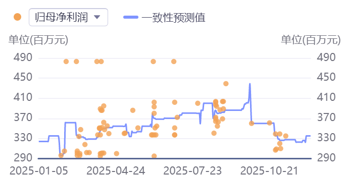 市场对公司业绩预期的调整,反映出对其增长动能和质量的持续审视。年中,基于并购整合的积极叙事,机构普遍给出了较为乐观的全年业绩预期(约3.5-4亿元)。然而中报及三季报显示业绩增速回落,市场对于全年业绩预期随之下修到3.3亿元附近。