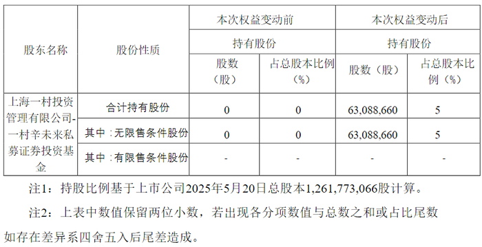 图片说明:一村辛未来私募持股比例变动,数据来源于公告