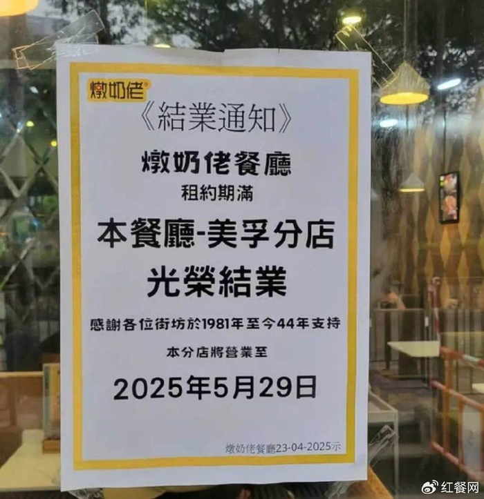 已有44年历史的连锁茶餐厅“金装炖奶佬”的最后一家门店,也于5月29日停止营业,该品牌全盛期在全港曾有24家门店。