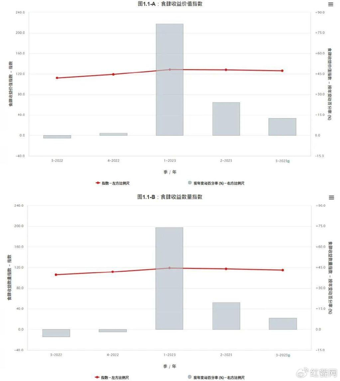 香港统计处数据显示,彼时香港食肆收益价值、数量指数均呈现出明显的上升趋势。