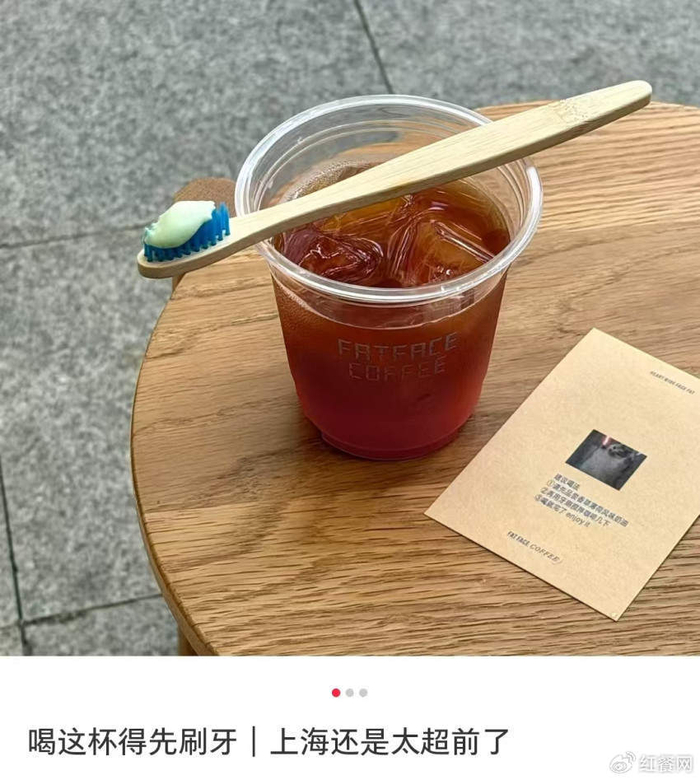 比如今年9月,一款“牙刷咖啡”就凭借新奇的营销玩法悄然走红。据了解,这款创意咖啡定价48元,配置十分特别——奶油被挤在牙刷上充当“牙膏”,咖啡则化身“漱口水”。顾客需先吃掉牙刷上带有薄荷香草味的奶油,再迅速饮下咖啡,让两种口味碰撞出独特的口感体验。据媒体报道,这款吸睛的创意咖啡走红后短短几天内,就被迅速“复制”到沈阳、南通、山东等多个城市的咖啡馆,火爆程度可见一斑。