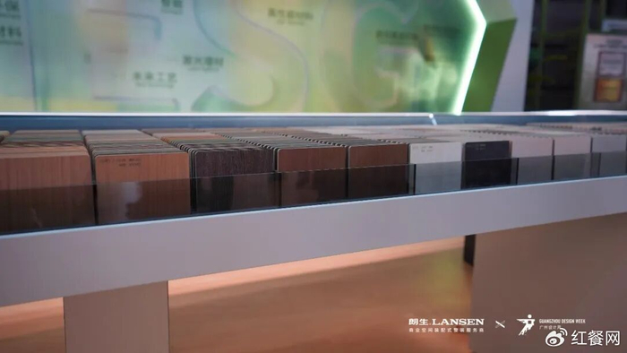 还有朗生推出的以“致当代·平衡美学”为主题的12款花色。在这里,餐饮老板能找到时下热度颇高的“黑金”“老钱”“赛博”“松弛”“轻法”“宋氏”等风格,把抽象概念转化成看得见摸得着的产品和搭配范式。