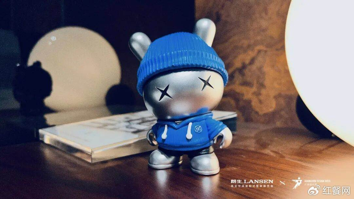 最吸睛的,还是入口C位这只深灰色金属兔子——星链兔。这一全新IP形象 ,憨态可掬又散发着金属光泽,颇具未来感。为星链兔量身定做的极夜、森语、粉星云、次元虹四个主题色,分别对应了朗生在基材、饰面、新材等方面的强项。隐藏款则是一只穿着衣服的星链兔,象征着朗生从提供材料到完整解决方案的角色迭代。