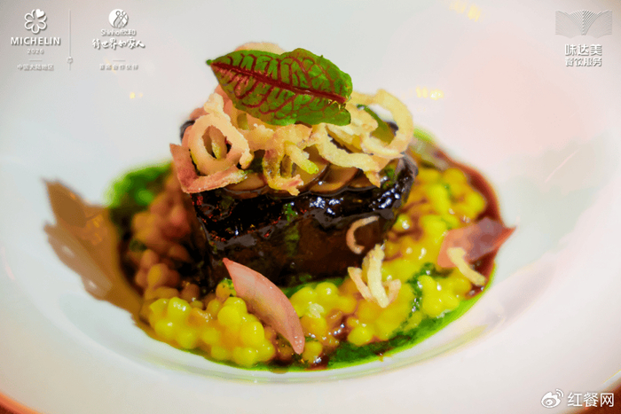 李强分享研发灵感时提到,这道菜的整体创意是希望用中式的调味逻辑来演绎西式的食材和技法。他借助味达美冰糖老抽在炖煮过程中的上色与提鲜效果,让成品色泽红润、味道醇香浓郁,同时搭配了米兰风味萨丁面,形如珍珠,口感软中带有弹性。最终呈现出来的菜好看又好吃。