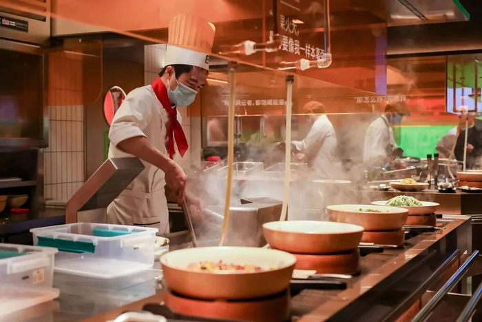 毋庸置疑,推倒中餐工业化、成品预制化的做法,把厨房从后端移到前端,把成品预制变成现场炒制,让中餐的锅气、香气和温度一并回归餐桌,在当时无疑是突破性的举动。