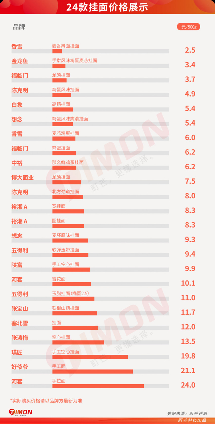 结合以上污染物、添加剂、标签、配料等维度评测结果后,这24款挂面在安全性上没有任何质量问题,只在品控和原料上有差距,那其他方面的差别都在哪?