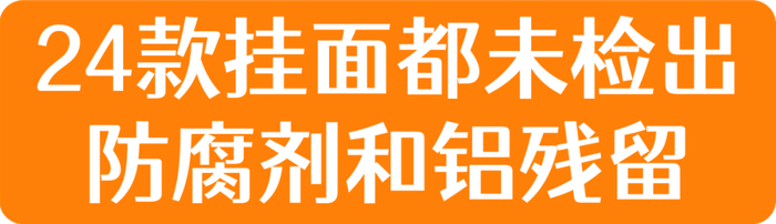 除了脱氧雪腐镰刀菌烯醇,我们还检测了挂面中不允许添加,但易出问题的防腐剂山梨酸钾、脱氢乙酸钠和增白剂铝,24款产品均未检出!