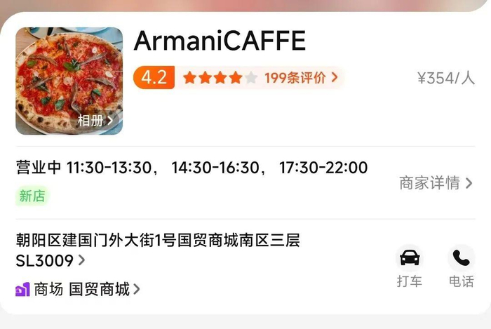 近日,阿玛尼在北京开出中国首家餐厅,虽然门店目前处于试营业阶段,但在“阿玛尼全国首家餐厅”的加持下,吸引了众多消费者关注,不少网友前去打卡。