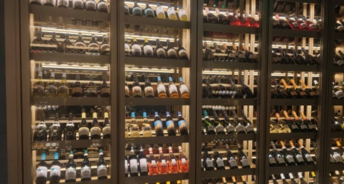 图片来源:联商图库两个餐区之间则以一条镶嵌开放式酒窖的走廊连接,走廊前面设置有吧台和休息区。