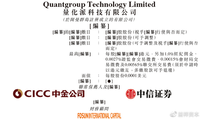 2月21日,量化派科技有限公司递交港交所上市申请。这是继其于2022年6月29日递表失效后的再一次申请。中金公司、中信证券为其联席保荐商。
