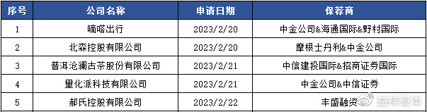 2月21日,普洱沧澜古茶股份有限公司更新了招股说明书中的财务报告期后,继续推进港交所上市申请,公司之前曾于2022年5月30日在港交所递表。中信建投国际、招商证券国际为其联席保荐商。