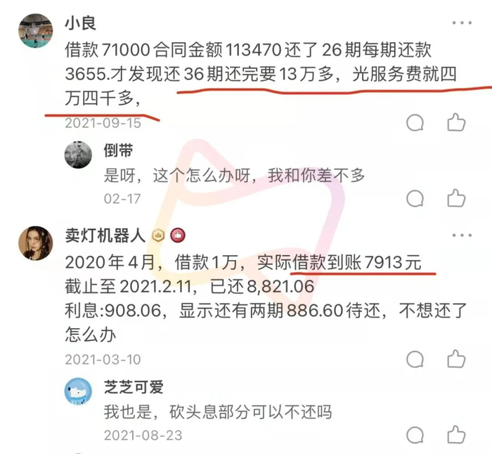 恒易贷涉嫌高额砍头息和巨额服务费不透明等投诉颇多。有借款人表示在恒易贷借款,实际到账金额为7.1万,合同金额为11.347万元,36期要还13万多,还了26期才发现其中有近4.4万元的费用是平台服务费。