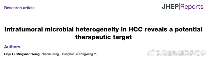 Liqiu Li, Mingxuan Wang, Zhaodi Jiang, Changhua Yi ,Yongxiang Yi .Intratumoral microbial heterogeneity in HCC reveals a potential therapeutic target. JHEP Reports, 2025, 7, 1–16