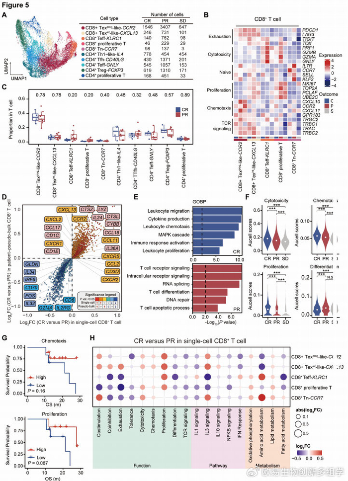 图5. T细胞趋化和增殖活性增强与治疗反应