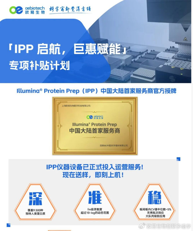 为回馈广大客户的支持与信任,值此授牌合作启新之际,欧易生物正式启动「IPP 启航,巨惠赋能」专项补贴计划。依托先进的 IPP 技术平台,我们与您携手并肩,以高性价比方案助力科研进程提速、成果加速转化!