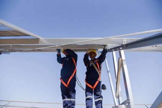 施工人员正在安装光伏板。地区融媒记者 张亚辉 摄