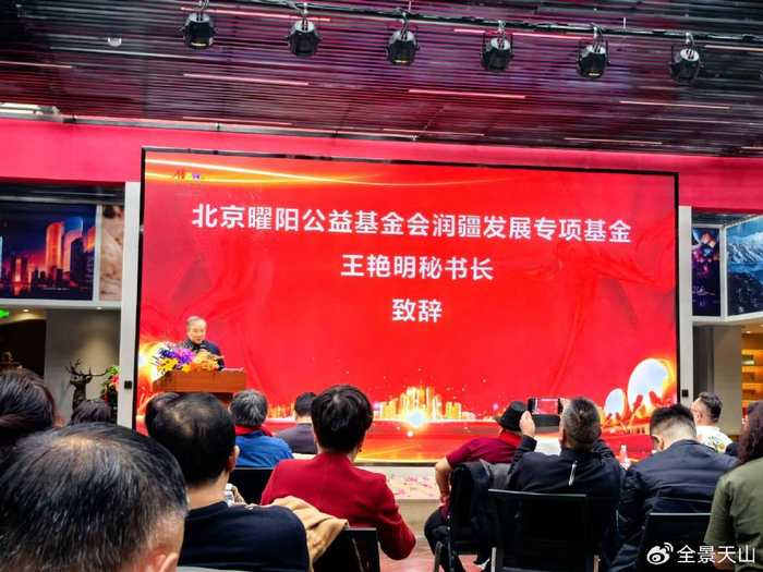 随后,北京曜阳公益基金会润疆文化发展基金秘书长王艳明表示,润疆文化发展基金,承载着支持新疆文化事业高质量发展的使命,致力于为文化传承、文艺创作、人才培养、产业升级提供坚实的支撑;此次携手“爱上新疆文化会客厅”,必将激发出“1+1>2”的澎湃动能。我们将以基金为引擎,孵化更多文化精品项目;以会客厅为平台,打造文化展示、交流、体验的立体空间;以“文化+”为路径,推动非遗活化、文旅融合、数字赋能,让新疆文化在新时代焕发新的光彩!