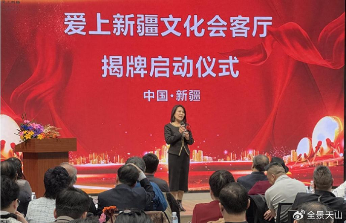 “爱上新疆文化会客厅”是响应国家“文化润疆”工程的创新实践,旨在以传播文化为内核,打造一个贯通古今、融汇资源的殿堂。会客厅不仅拥有1200平米的物理空间,更是一个集文化传播、商务交流、资源整合于一体的高端平台。揭牌仪式上,主持人贾丽丽作为会客厅的创始人之一,热情洋溢地欢迎了各位来宾,并表达了对会客厅未来发展的美好期许。